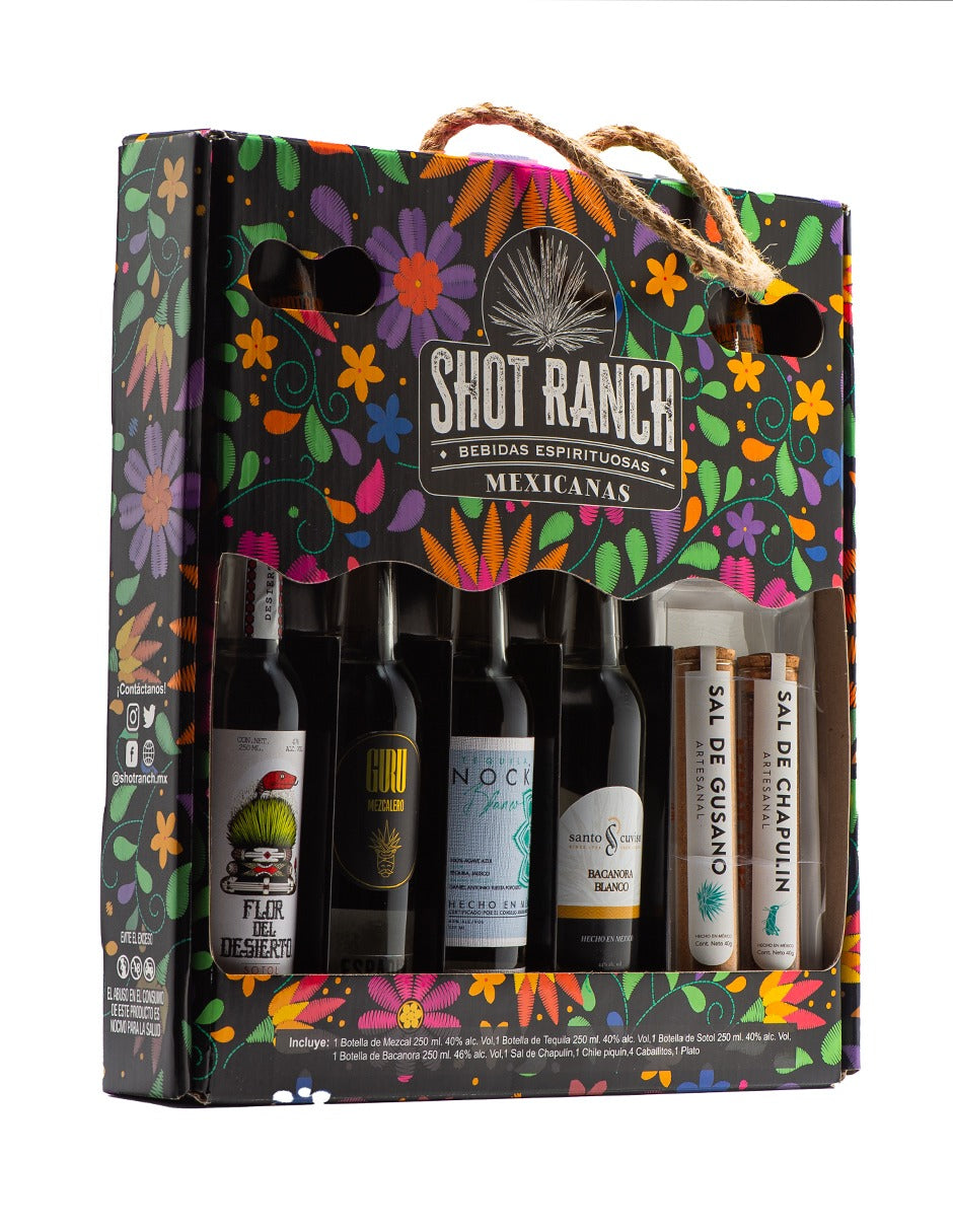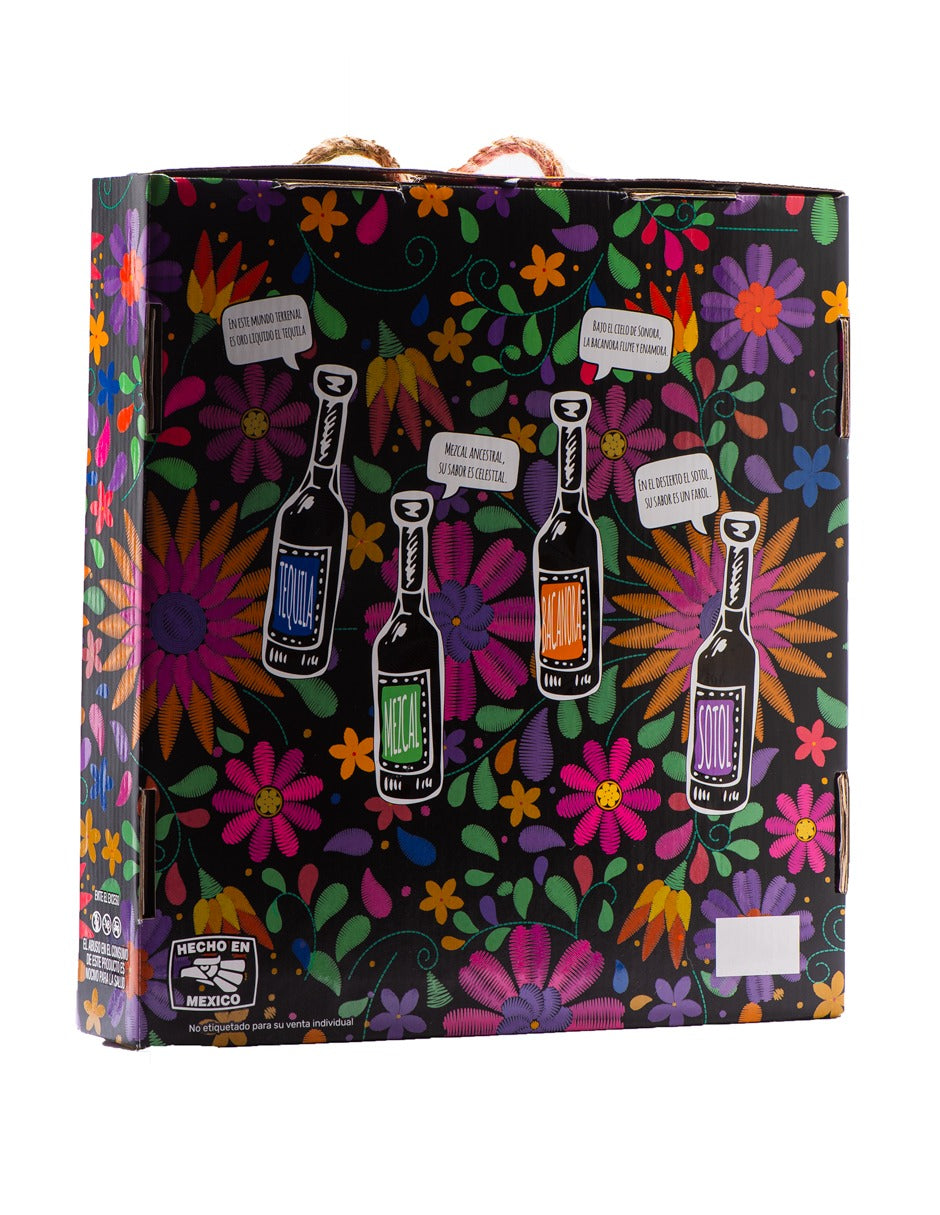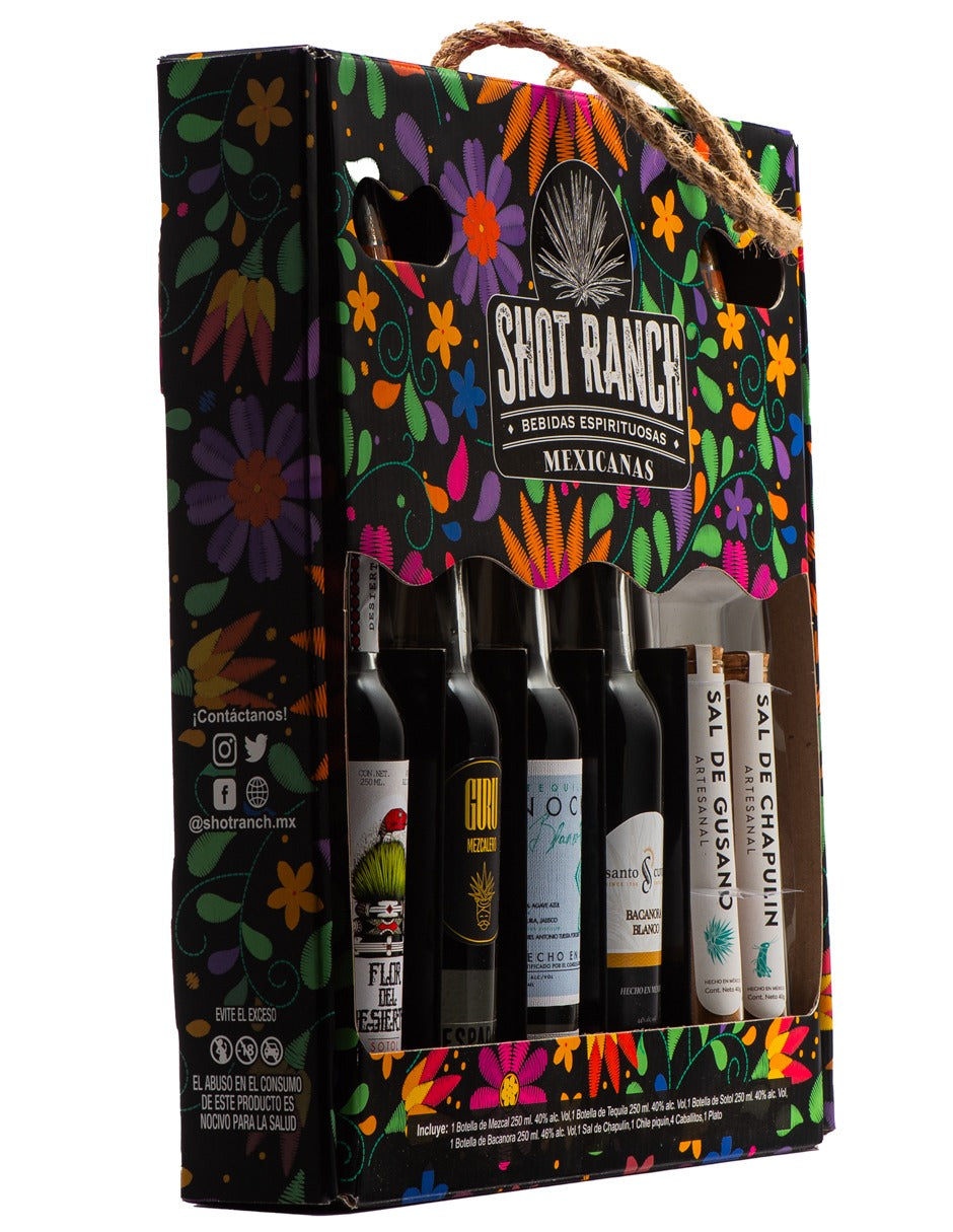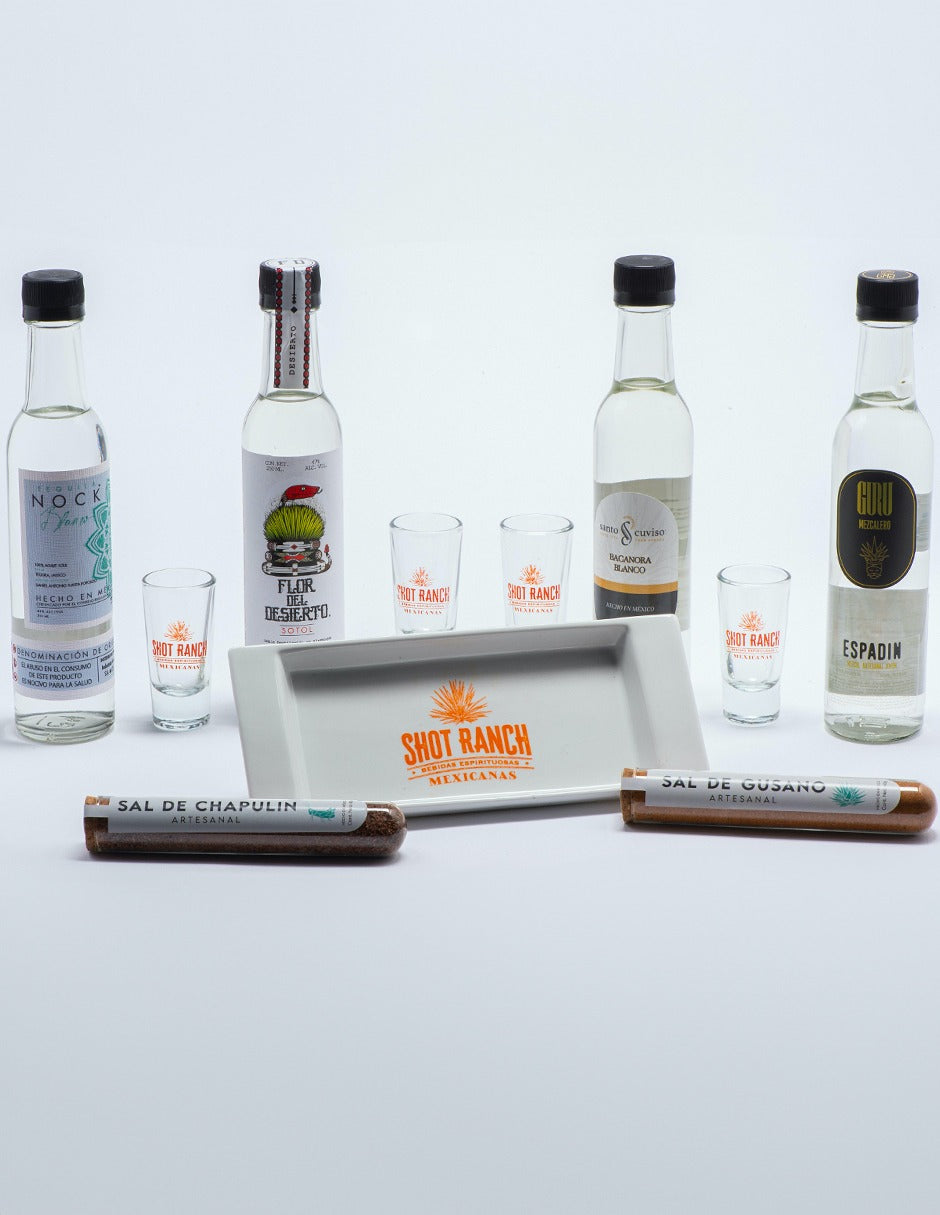 Ideal para una fiesta o reunión con amigos y familiares, el Paquete Grande incluye una variedad de destilados de alta calidad: Mezcal Guru, Sotol Flor del Desierto, Tequila Nock, y Bacanora Santo Cuviso. Además, viene con 4 caballitos para shots, un platito botanero, una sal de gusano y una sal de chapulín para complementar la experiencia. ¡La opción perfecta para probar diferentes sabores y marcas en una sola compra!, Cabe mencionar que todos los productos dentro de este paquete son artesanales.